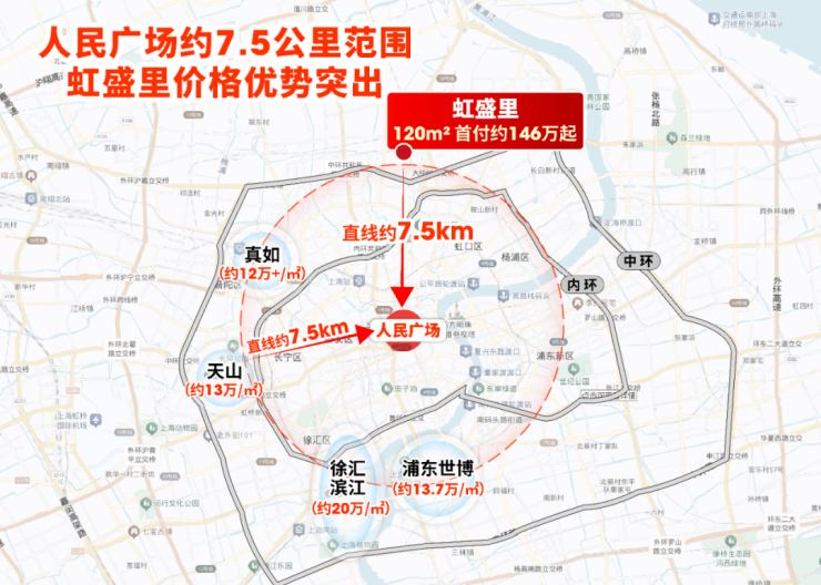 ,项目身处上海高架最稠密区域,叠加已通车的军工高架及“中环北抬”规划利好,通勤效率高周边公交线稠密,